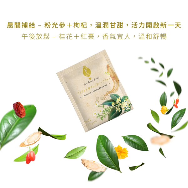 珍貴加拿大粉光蔘原枝切製 、添加台灣國產菊花、金盞花、特選枸杞與紅棗